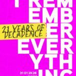 private event SAT 31. 01. 26 21T𝐻 𝐴N𝑁I𝑉E𝑅S𝐴R𝑌 //2005-2026// -I REMEMBER EVERYTHING- honoured guest: BLACK ASTEROID live set U.S.A @Binario Centrale Ex Scalo Ferroviario DumBo “An extreme expression of elegance and diversity” ______full program soon! ★ badge Decadence celebrativi con tiratura limitata a 500 pezzi, numerazione individuale -> 𝙩𝙝𝙖𝙣𝙠𝙨 𝙩𝙤 𝙩𝙝𝙚 𝙘𝙤𝙢𝙢𝙪𝙣𝙞𝙩𝙮, 𝙖𝙡𝙡 𝙩𝙝𝙚 𝙢𝙞𝙨𝙩𝙧𝙚𝙨𝙨, […]