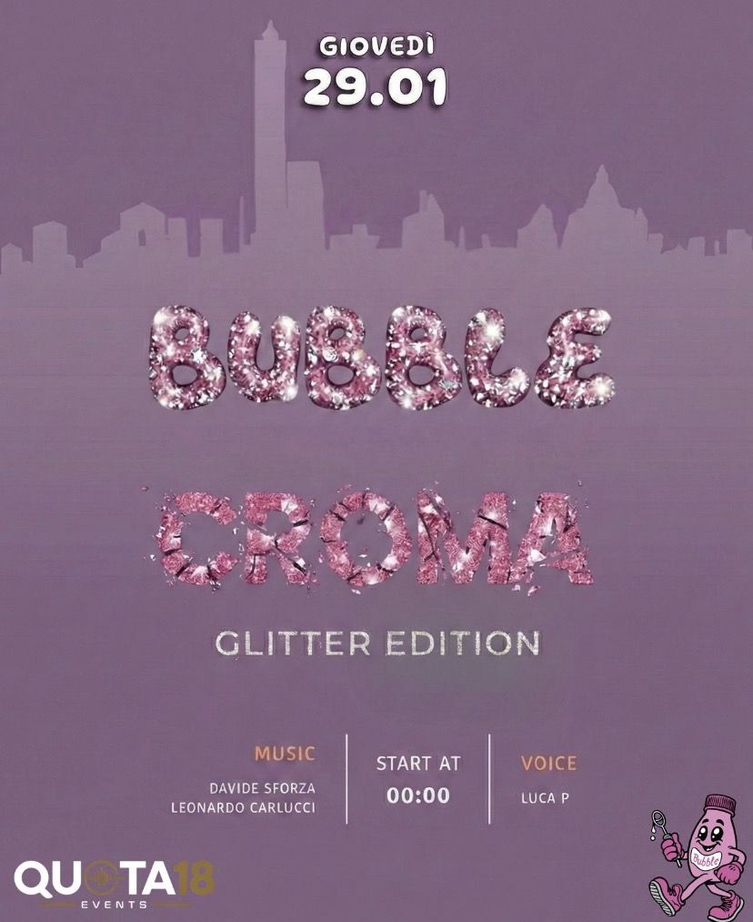 Bubble e Quota18 si uniscono assieme per una notte all’ insegna dei glitter, in serata vi faremo brillare tutta notte!